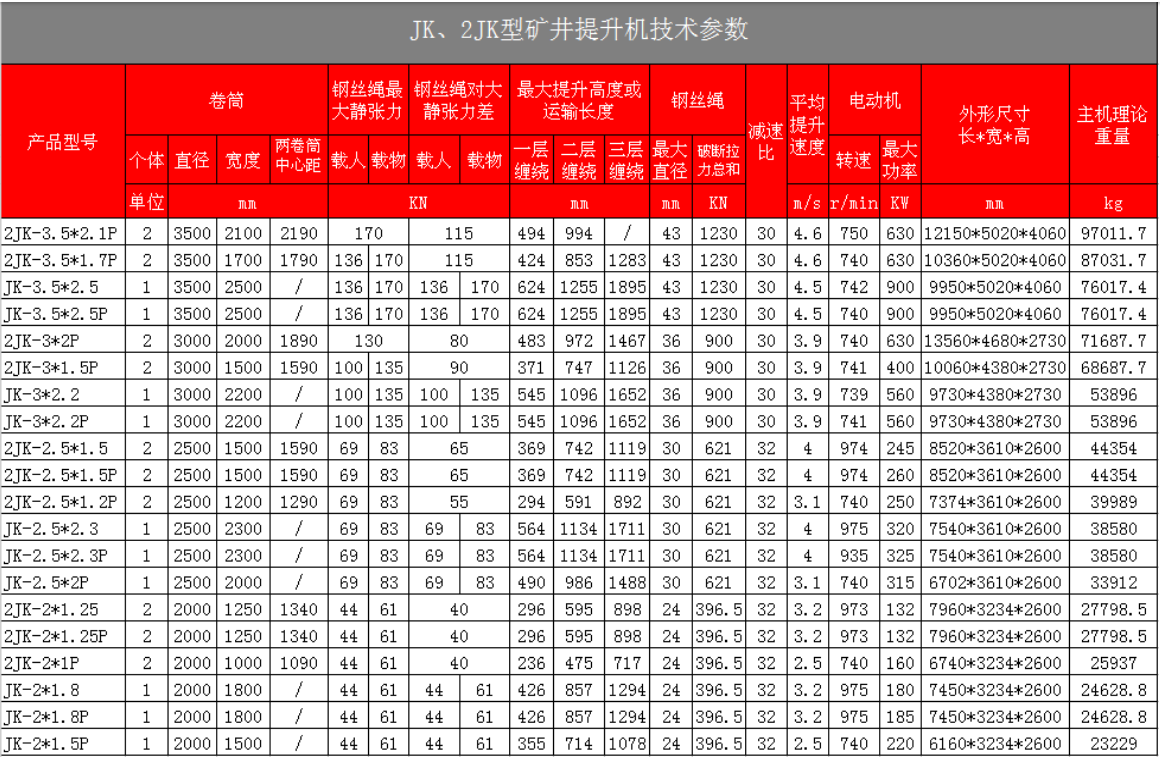 JK所指的含義:如JK3×2.2P,卷筒直徑是3米,寬度是2.2米;此型是非隔爆型的變頻調(diào)速單繩纏繞礦井提升絞車。